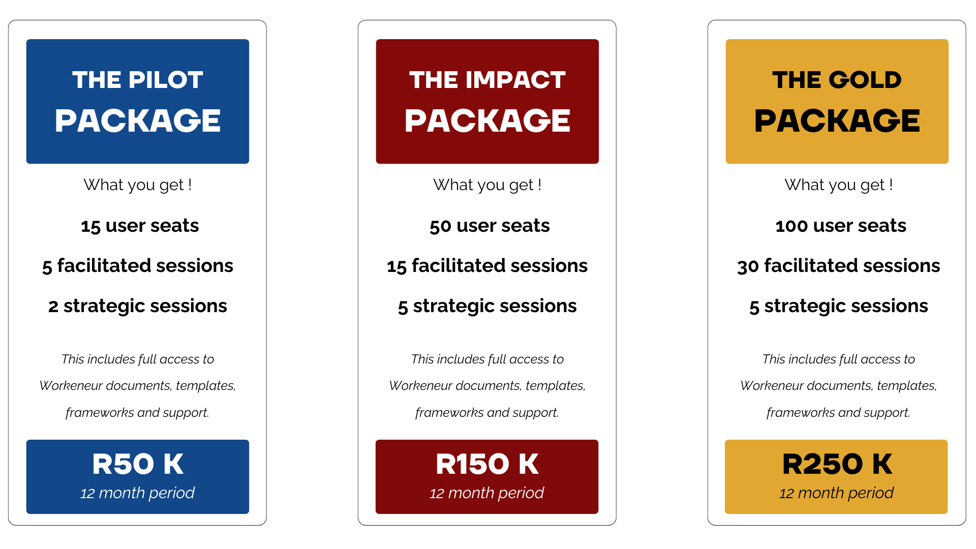 Below we have outlined all of the additional benefits and value you have access to from our Workeneur team when you make the decision to equip your employees with the capabilities to innovate like never before! Each of these organisational offerings are available on demand and the discount offered is based upon the capacity of staff entrusted to our platform.